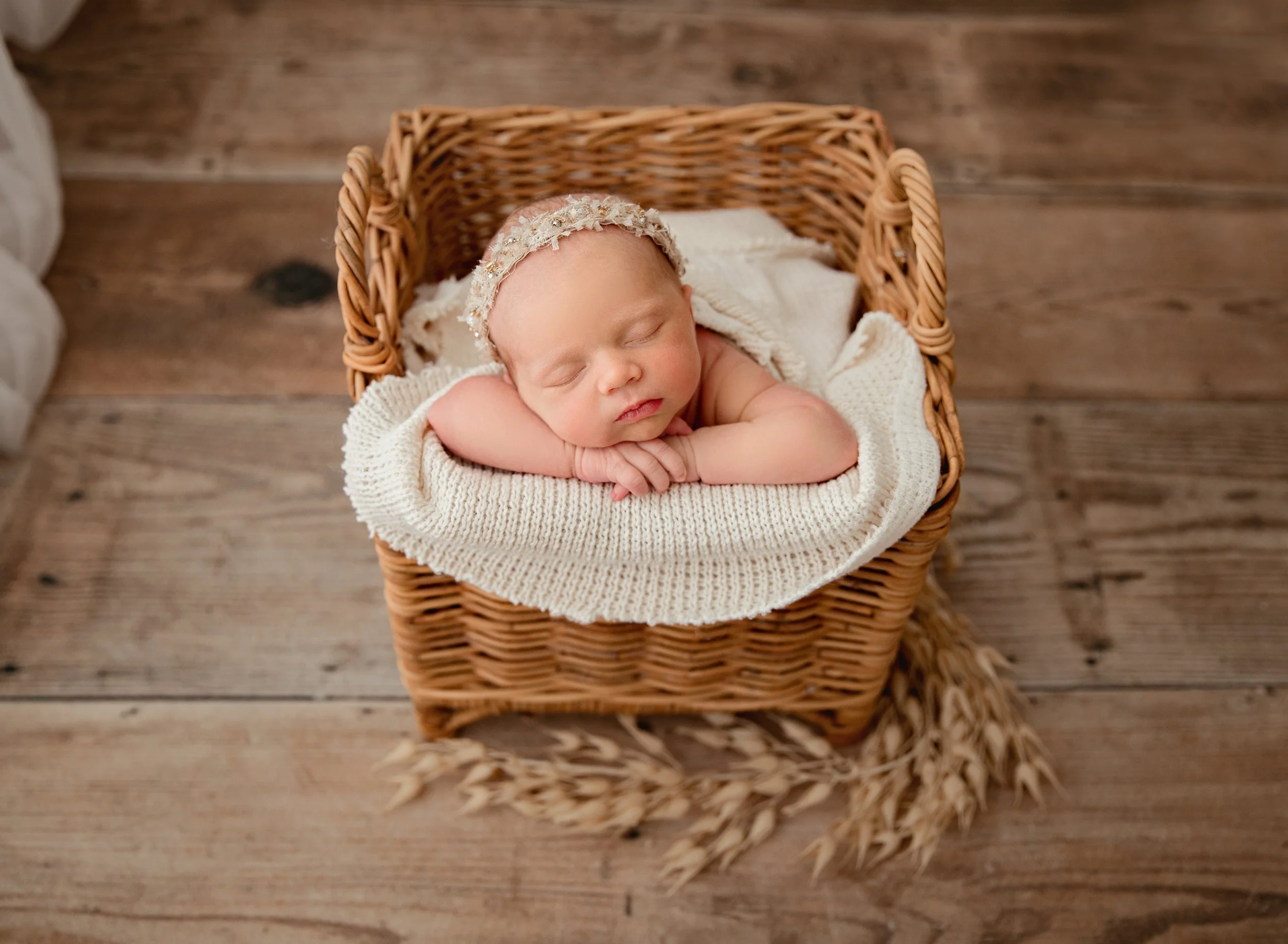 Up to 2 hours in the studio, images include a variety of newborn poses using my collection of wraps, props, headbands and hats.